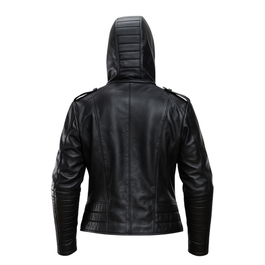 Buy Quilted Black Motorcycle Hooded Unisex Real Leather Jacket – Premium Biker Outerwear for All-Season Comfort, Rugged Durability & Timeless Road-Ready Style