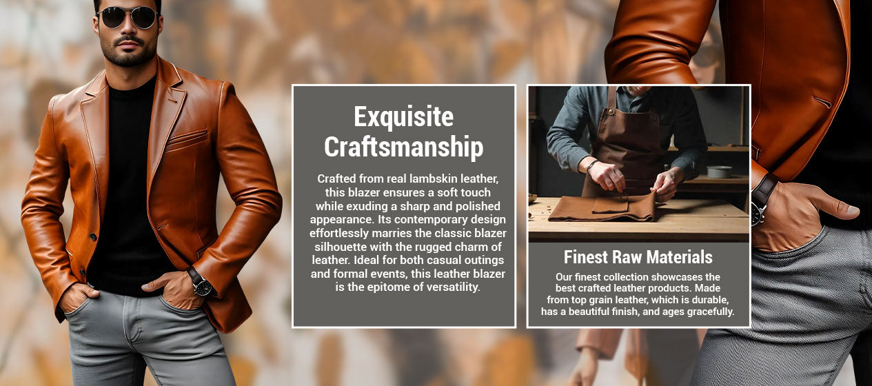 We begin with the bestnatural full-grain and top-grain hidesthat offer durability, strength, and comfort. Unlike imitation or split leather, ours grows richer with age, giving every jacket a character as unique as the person wearing it.