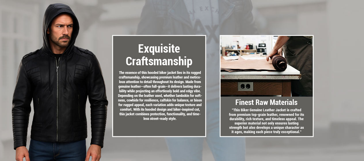 Buy Quilted Black Motorcycle Hooded Unisex Real Leather Jacket – Premium Biker Outerwear for All-Season Comfort, Rugged Durability & Timeless Road-Ready Style